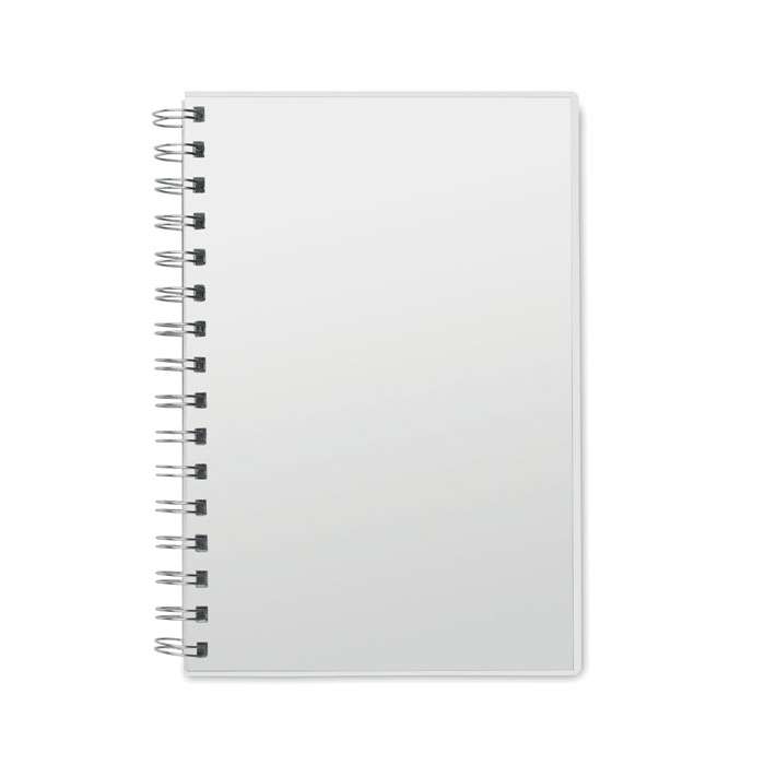 Notebook A5 con copertina in RPET e 160 pagine (80 fogli) di carta a righe.