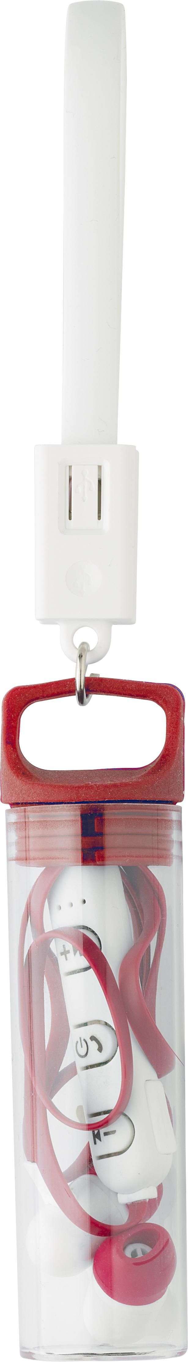 Auricolari wireless, funzione di risposta alle chiamate, lunghezza cavo 68 cm circa, cordino in tinta bianca utilizzabile per la ricarica degli auricolari, in comodo astuccio cilindrico