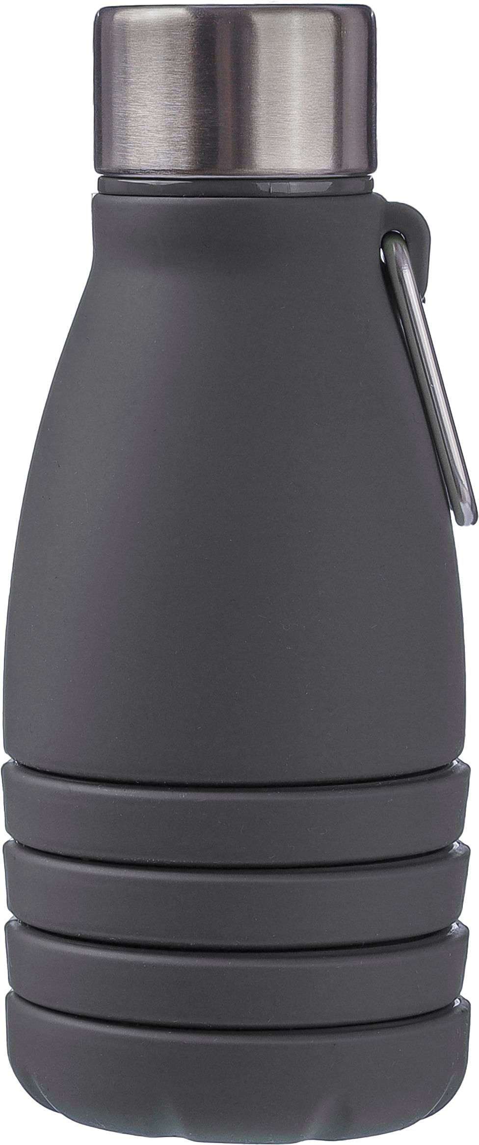 Borraccia pieghevole in silicone, coperchio in acciaio inox e gancio a moschettone in alluminio, dimensioni da ripiegata: ø7x17 cm, dimensioni aperte: ø7x25 cm, confezionamento sfuso, capacità 550 ml