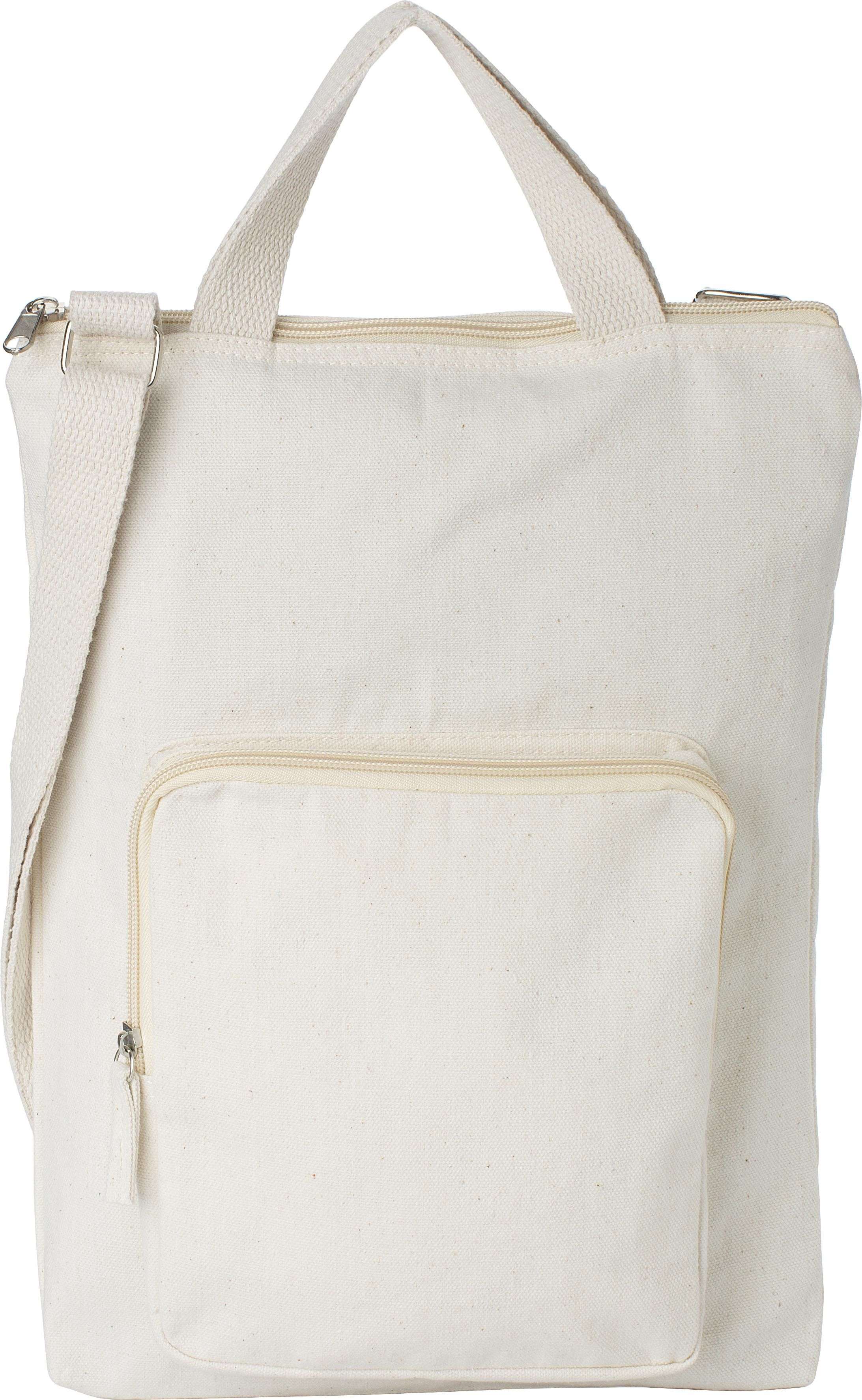 Borsa portacomputer in cotone 340 g/m², adatto per laptop da 15 pollici, ampio scomparto, vano frontale, chiusura lampo, manici corti, tracolla regolabile
