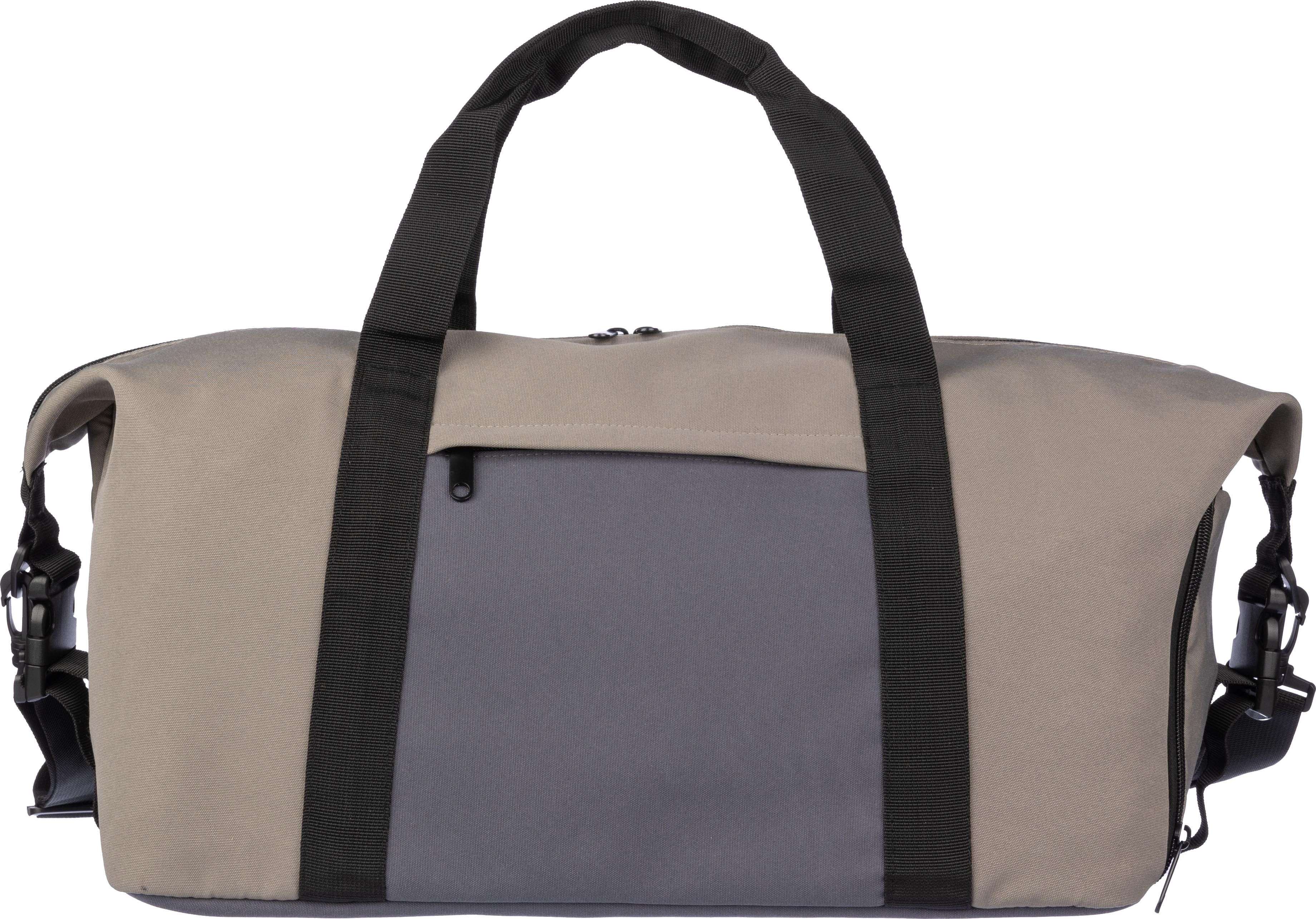 Borsone in poliestere 600 D (imitazione cotone), fodera in PU 210 D, fondo in schiuma PE 3 mm, ampio scomparto sul lato superiore, tasca sul lato anteriore, entrambe con chiusura lampo, scomparto per scarpe sul lato, manici corti, ampia tracolla imbottita regolabile
