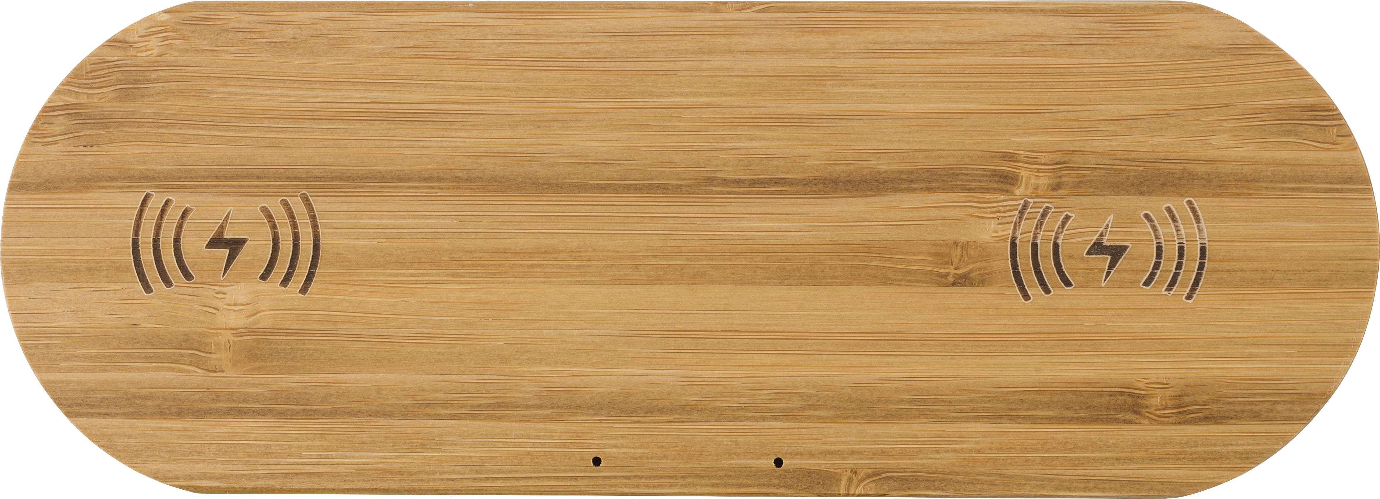 Caricatore wireless in bamboo, doppia posizione per la ricarica, input DC 5V-3A, output 2x DC 5V / 1A, cavo incluso, adatto per la maggior parte dei device in commercio