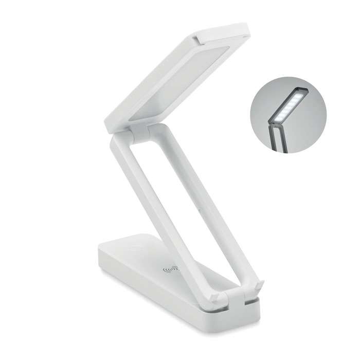 Lampada da tavolo pieghevole in ABS con 14 luci LED con 3 impostazioni di luminosità, caricatore wireless da 10W. Uscita: DC 9V/1.1A (10W) per una ricarica rapida. Compatibile con gli ultimi Android, iPhone® 8 e successivi.