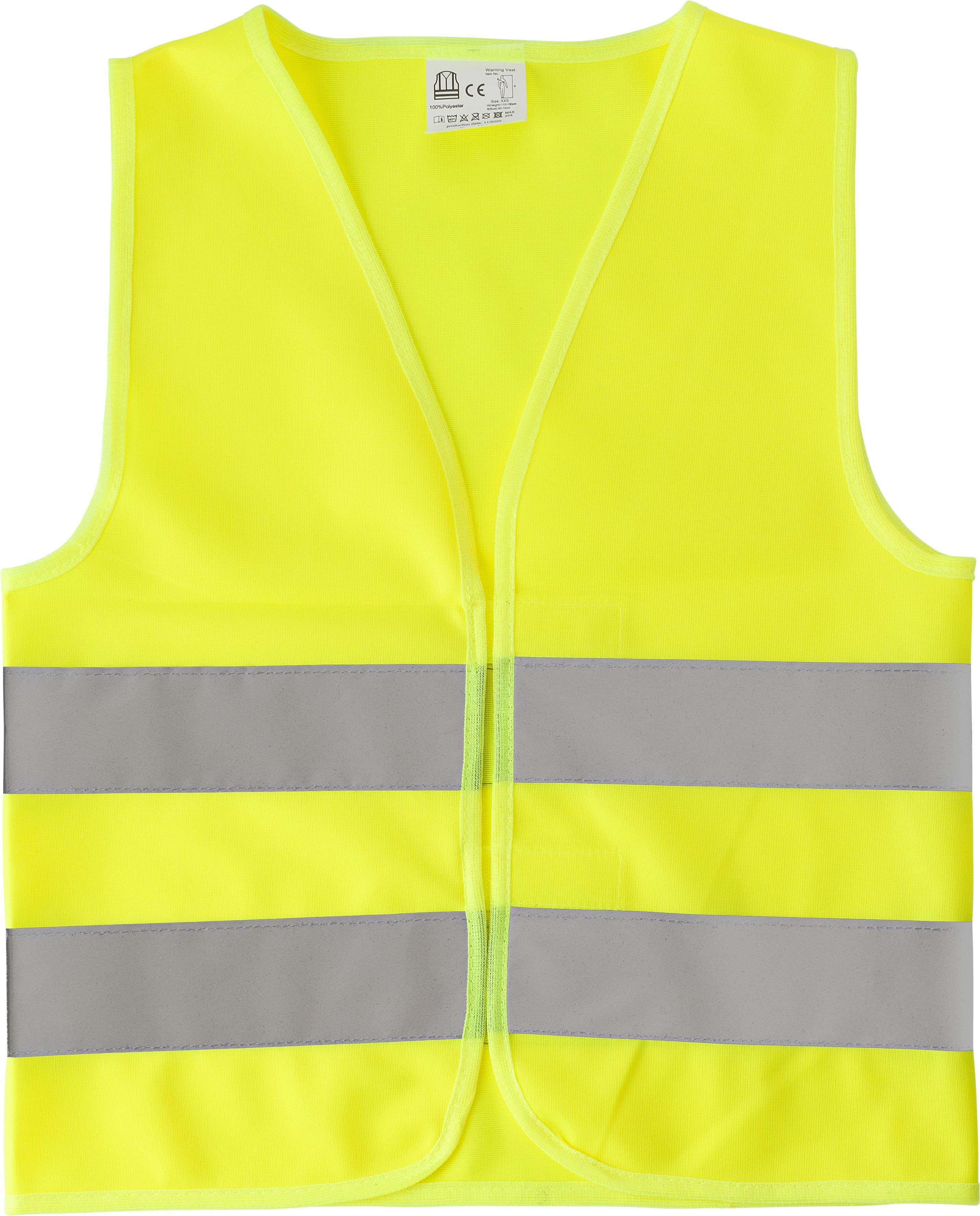 Gilet d'emergenza per bambini, certificato EN1150, taglia S, in poliestere 150 D, solo per uso promozionale. I prezzi indicati nella tabella sottostante si basano sulla taglia più grande (XXL). I prezzi effettivi variano in base al modello/taglia. XXS= 47x37 cm, XS= 50x46,5 cm, S= 57,5x54 cm (LxW).