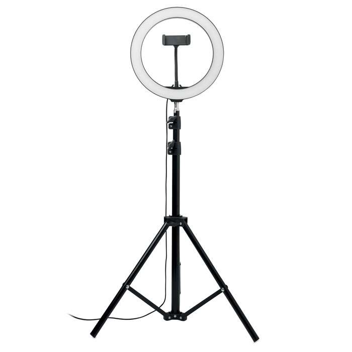 Anello luminoso a LED da 26 cm selfie con treppiede e supporto telefono. Ideale per tik-tok®, live streaming, trasmissione e fotografia. Otturatore cablato compreso. Luce bianca, calda, leggera (120 LED) con 10 livelli di luminosità.