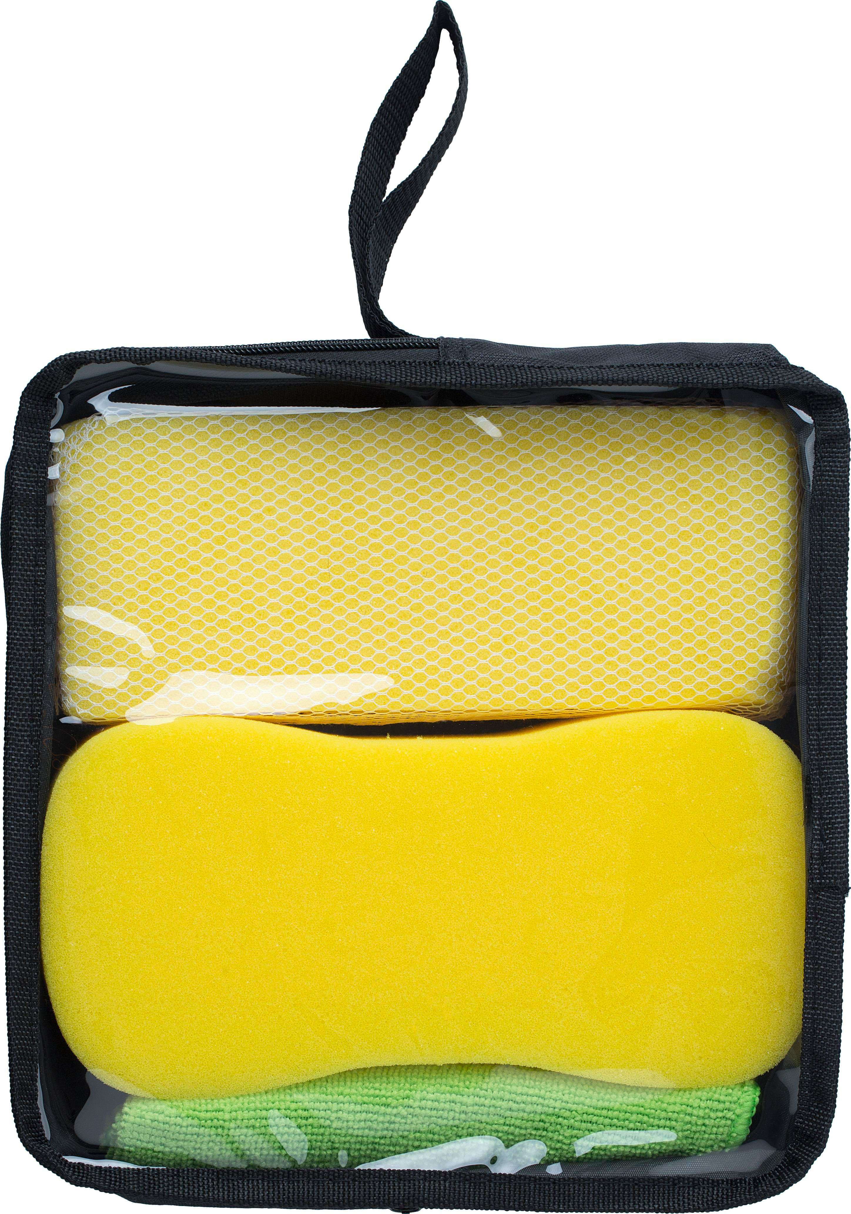 Kit in PU 3 pezzi per il lavaggio dell'automobile, contiene spugna morbida, spugna con rete ed asciugamano in microfibra