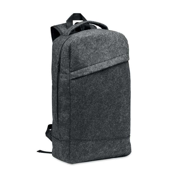Zaino porta laptop da 13 pollici in feltro RPET con spallacci imbottiti e tracolla con scomparto principale interno. Scomparto con cerniera all'interno. Porta trolley sul retro.