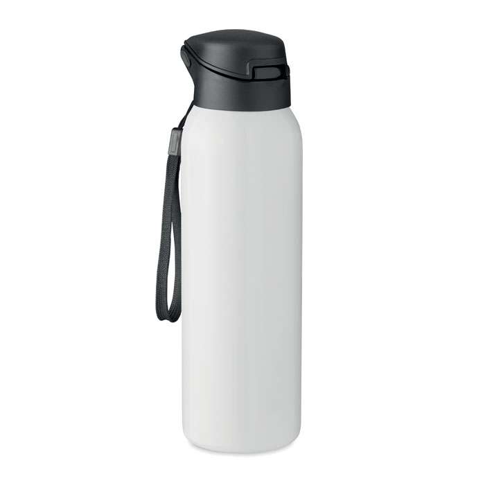 Borraccia isolata sottovuoto a doppo strato in acciaio inox con cannuccia o imboccatura integrata e coperchio con gancio. Capacità 580 ml.