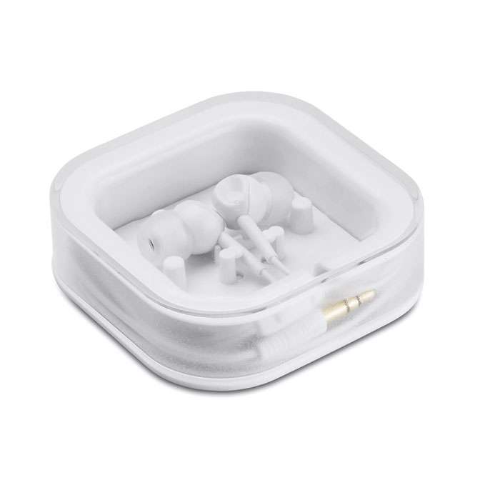 Auricolari in silicone con 2 ricambi. In confezione di plastica e cavo da 120 cm.