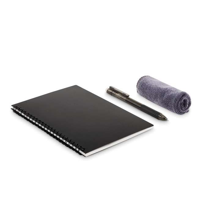 Taccuino riutilizzabile A5 con copertina in PP. 36 pagine di carta a righe (18 fogli). Compatibile con qualsiasi app di scansione documenti. Include penna cancellabile con acqua e panno per la pulizia. FSC 100% | P10 | FSC-C213206