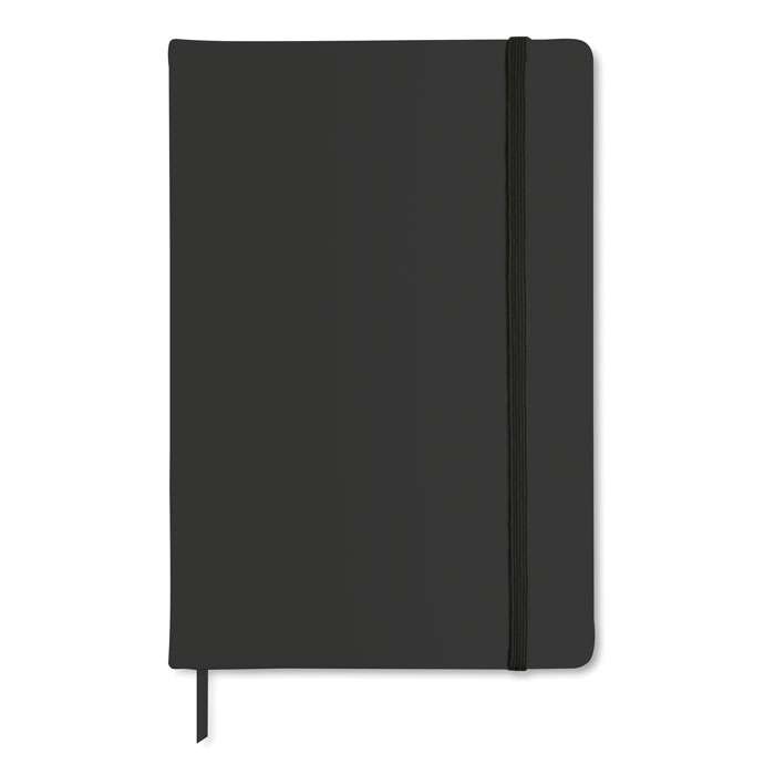 Notebook A6 con copertina rigida in PU. 192 pagine a righe (96 fogli). Chiusura con elastico in tono e nastro segnapagina. FSC®-certified | FSC MIX CREDIT, P7.1, FSC-C213206