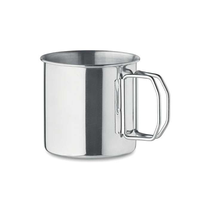 Tazza in acciaio inox a parete singola con manico pieghevole. Capacità: 330 ml.