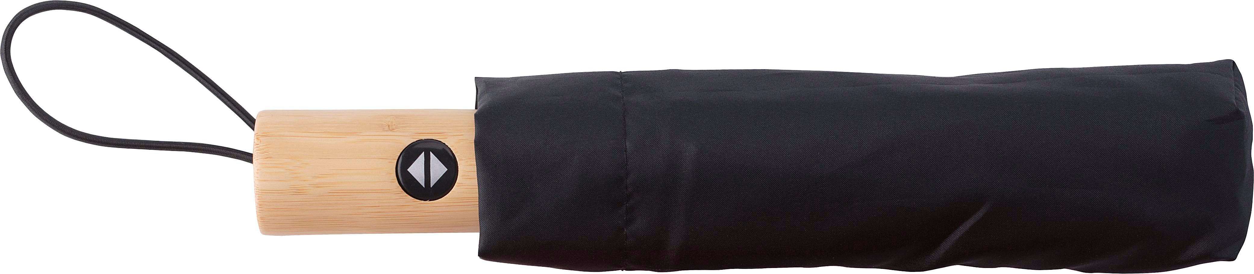 Ombrello pieghevole automatico 'Apri & Chiudi', otto pannelli, chiusura in velcro e manico in bambù, cordino comodo per il trasporto, in rPET