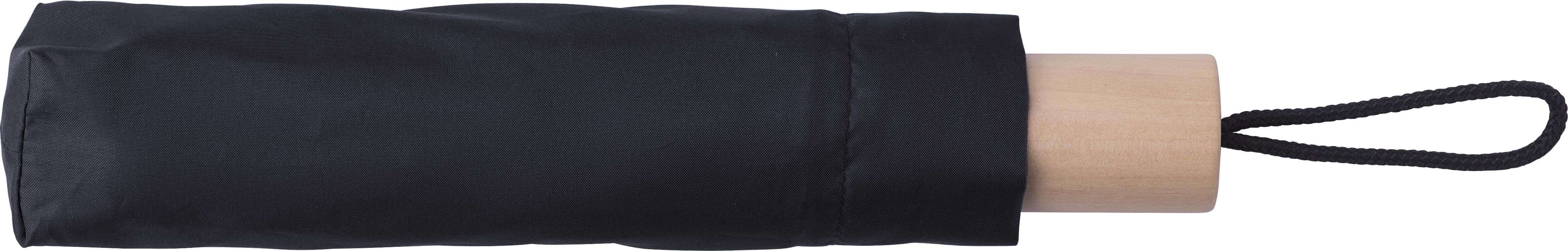 Ombrello pieghevole, manuale, otto pannelli, chiusura in velcro, manico in legno di rovere, con custodia, in rPET 190T