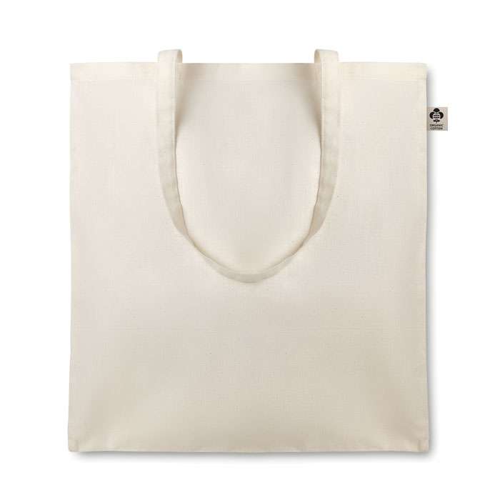 Shopper in cotone organico con manici lunghi. 105 gr / m². Questo prodotto è certificato OEKO-TEX® STANDARD 100.
