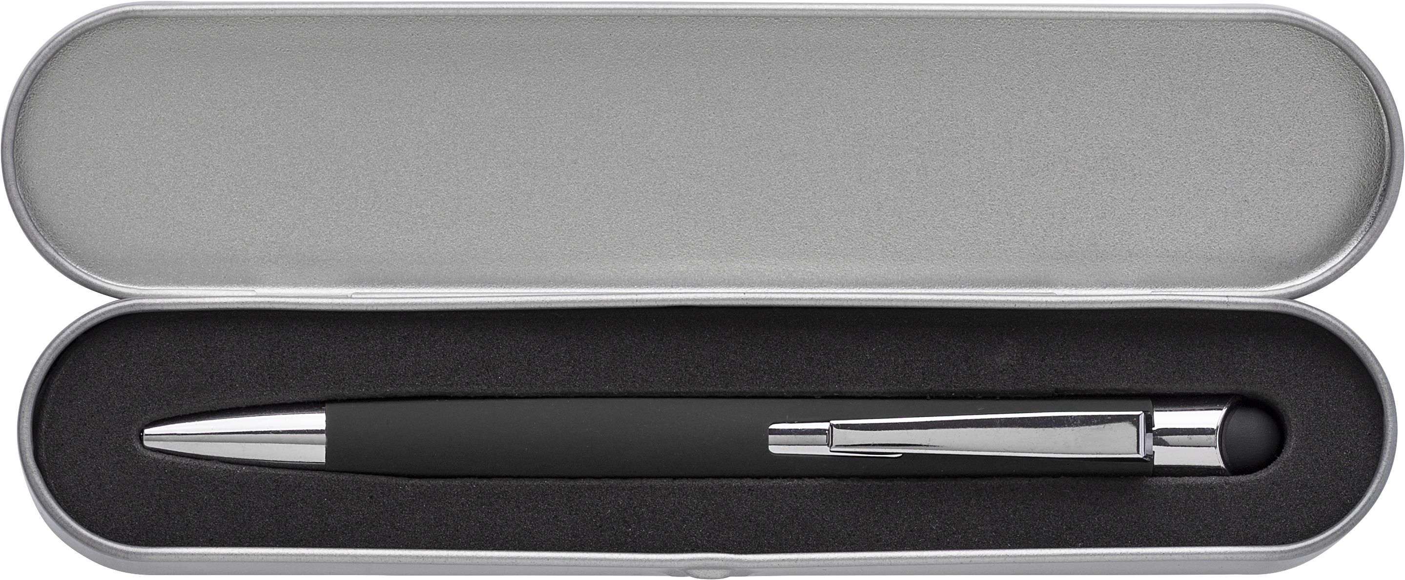 Penna a sfera in alluminio capacitiva (compatibile su schermi touch), fusto in gomma, custodia in alluminio, refill nero.