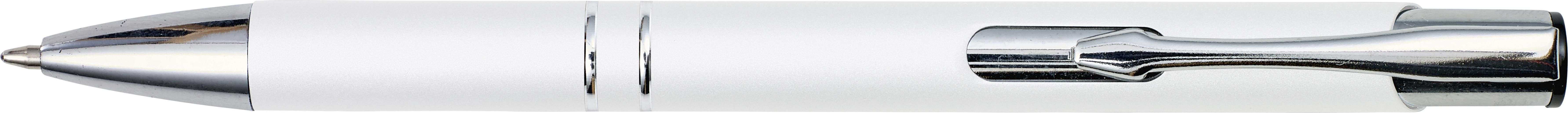 Penna a sfera in alluminio con strato gommoso, due anelli decorativi, punta e clip in metallo, refill blu