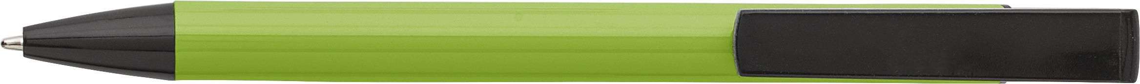 Penna a sfera in alluminio, corpo colorato, finiture in nero, meccanismo a scatto, funzione supporto smartphone, refill blu