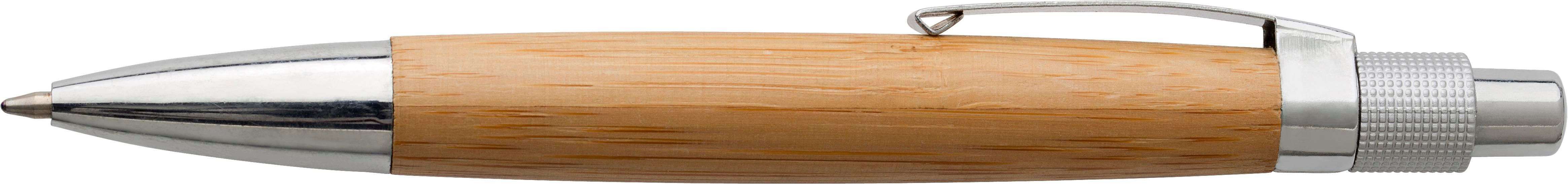 Penna a sfera in bamboo, meccanismo a scatto, componenti in metallo, refill blu