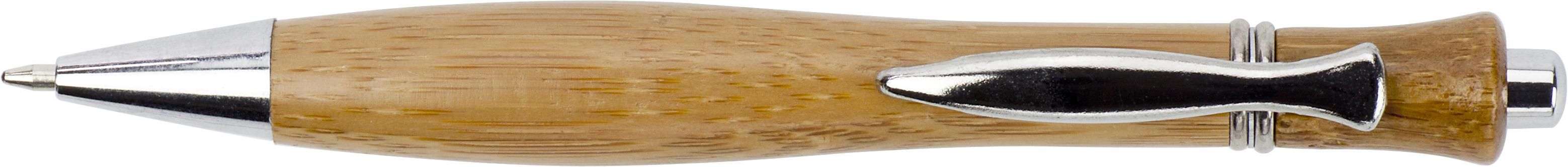 Penna a sfera in legno con meccanismo a scatto, componenti in metallo, refill nero