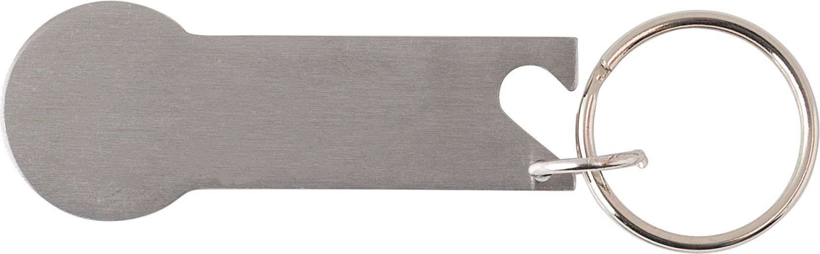 Portachiavi multifunzione, chip portamonete e funzione apribottiglie, confezionato in polybag, in acciaio inox