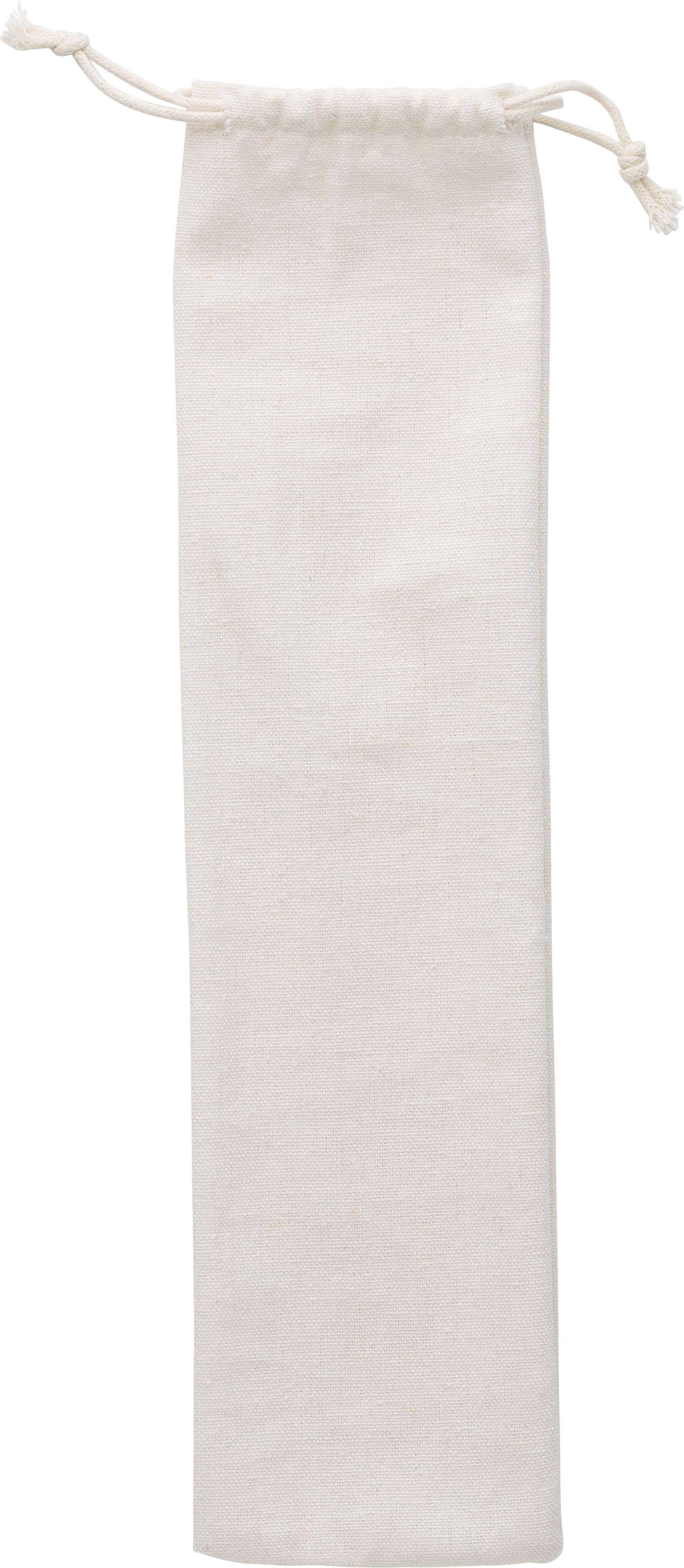 Posate da insalata in bambù, fori all’estremità del manico, confezionati in sacchetto di cotone con chiusura a coulisse