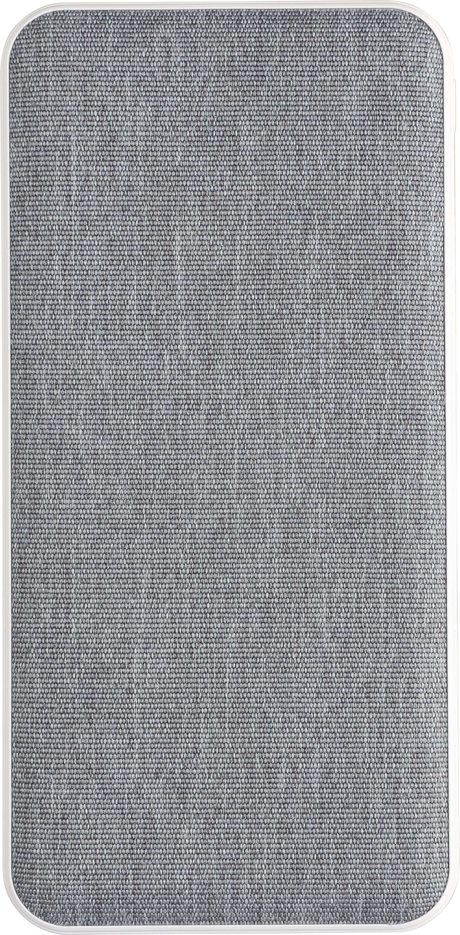 Power bank in ABS riciclato e tessuto rPET con una capacità di 10.000 mAh e una durata di almeno 500 cicli di carica. Dotato di due uscite USB e una porta Type-C per ingresso e uscita (5V DC/2,4A, 12W). Dispone di un display di indicazione della carica e di un logo rPET sulla parte superiore ed include un cavo per la ricarica bianco da 30, confezionato singolarmente in una scatola in cartone avana