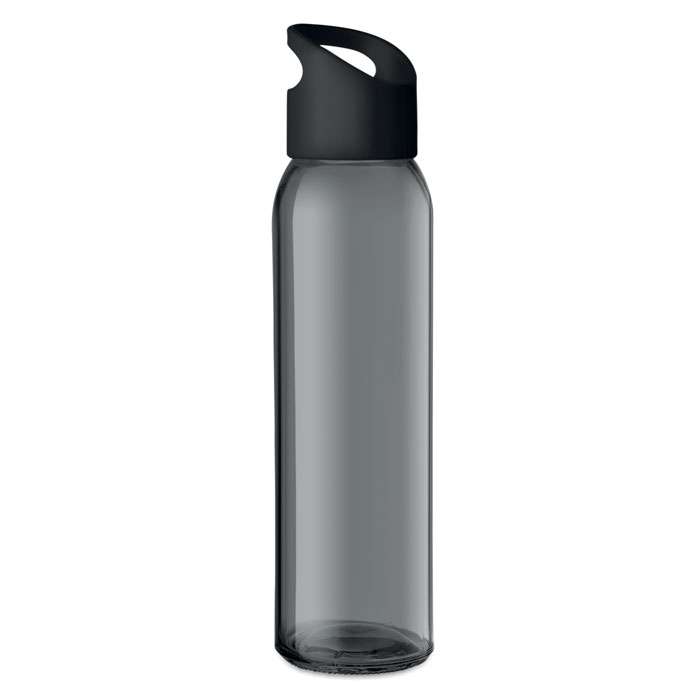 Bottiglia in vetro con coperchio in PP e gancio per appendere. Capacità 470ml. Non adatto a bevande gassate, alcoliche e a base di latte.Antigoccia.