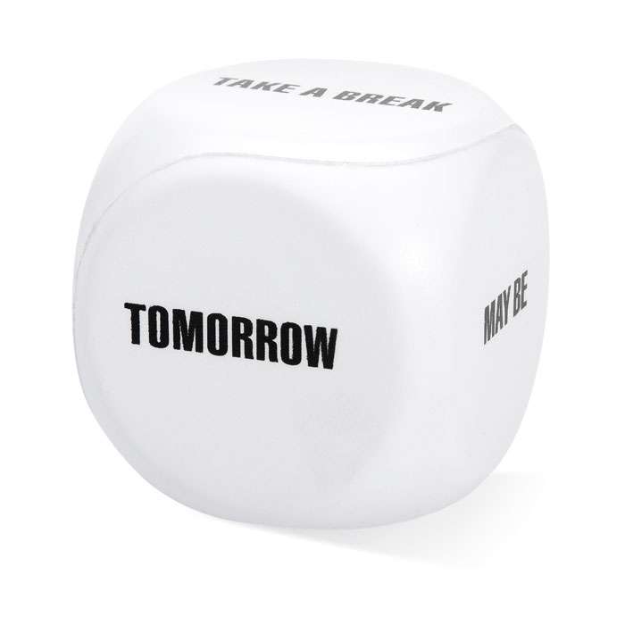 Antistress a forma di 'dado' (Take a break, tomorrow, may be, yes, no). In PU.