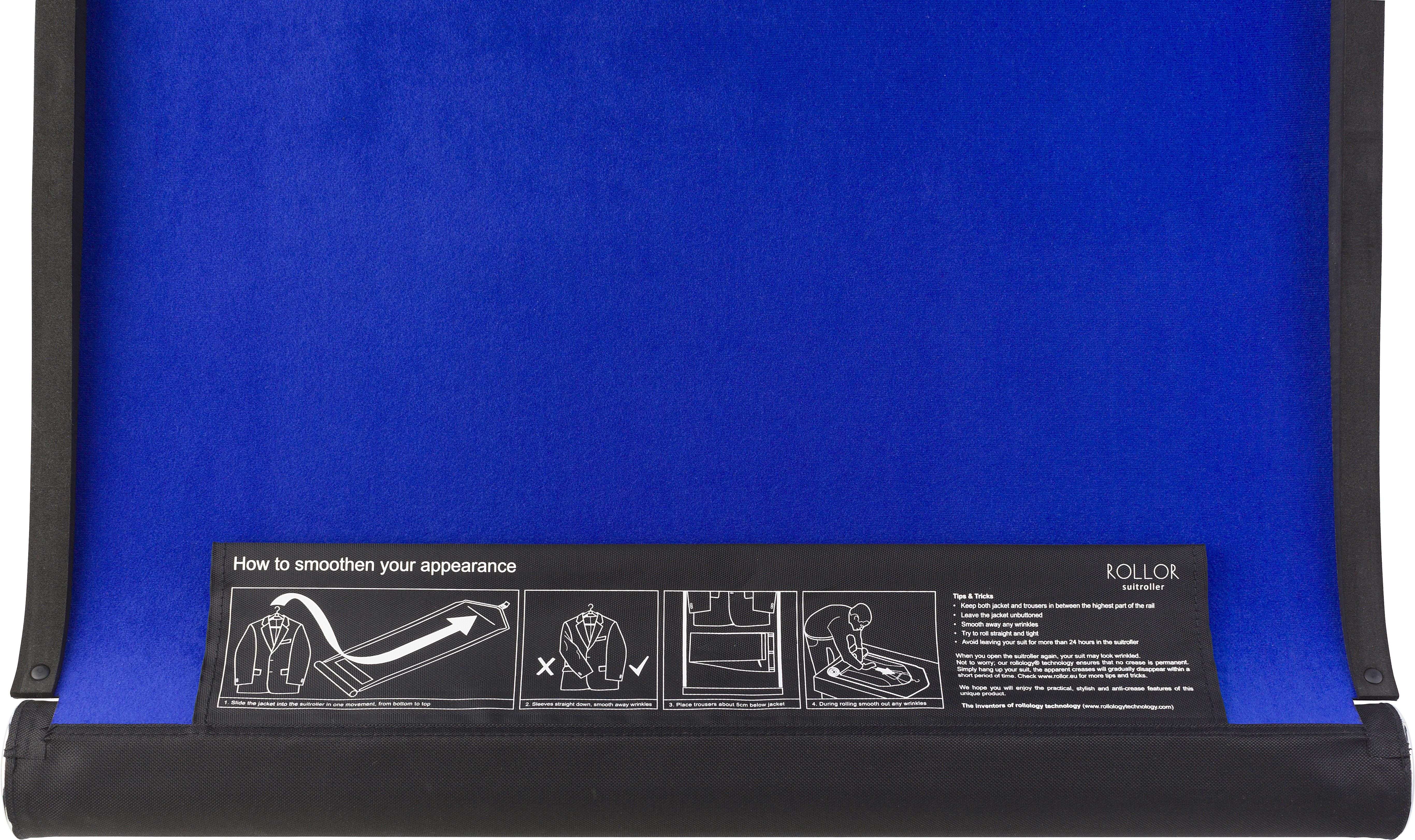 Rollor® Suit, supporto da viaggio per abiti con tecnologia anti-piega rollology®; permette il confezionamento di un abito in modo compatto, che arrivi a destinazione privo di piega