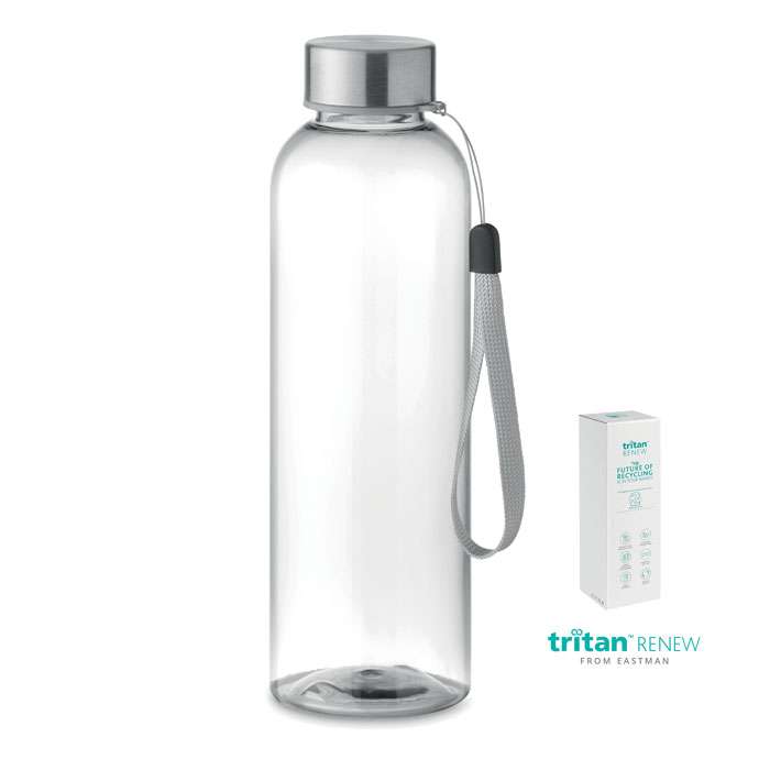 Bottiglia in Tritan Renew™, senza BPA, con coperchio in acciaio inossidabile. Senza perdite. Capacità 500 ml. Derivato dal 50% di rifiuti plastici secondo il bilancio di massa certificato dall'ISCC.