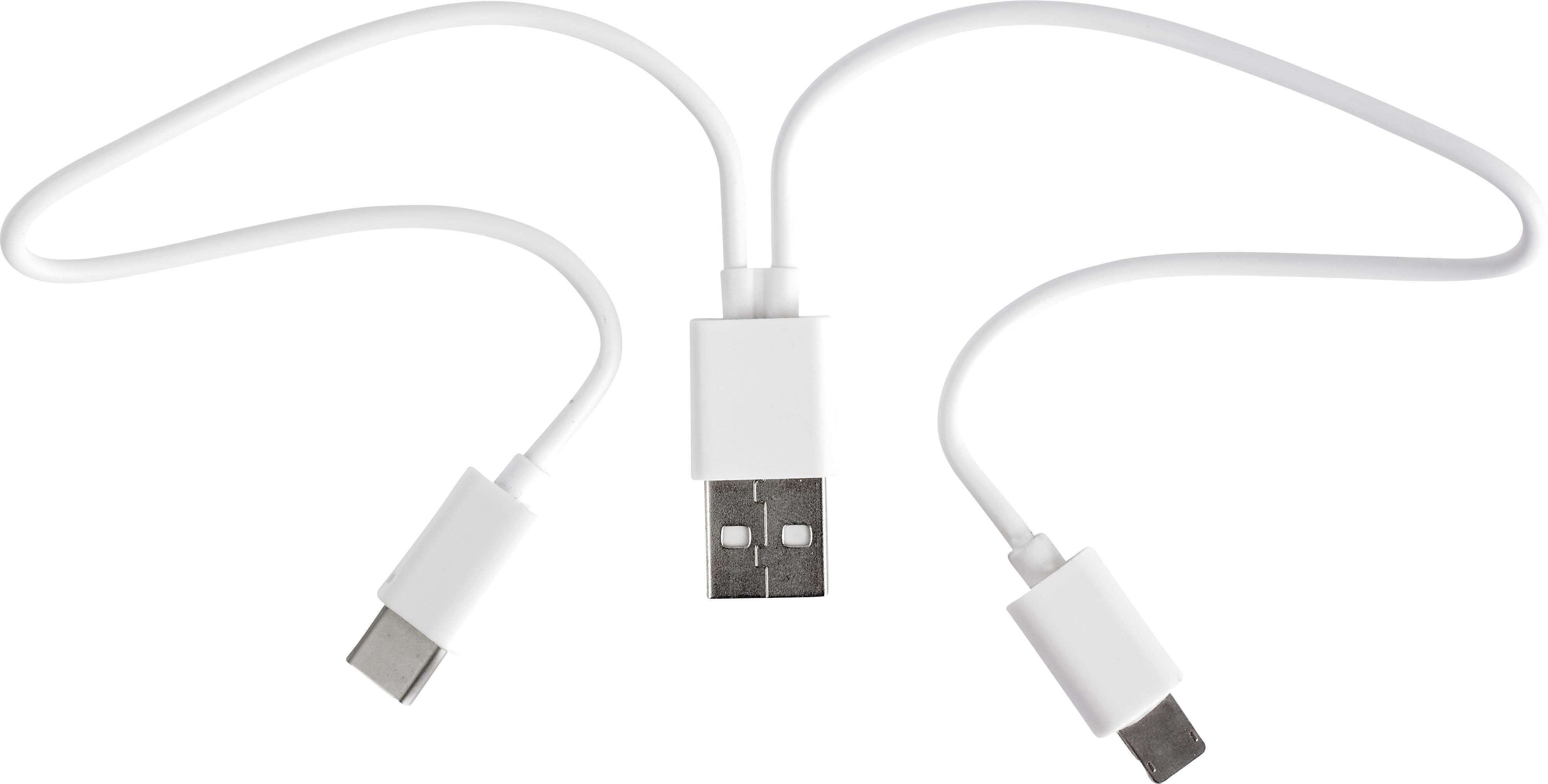 Set cavi per la ricarica, custodia in ABS, include connettore USB, USC-C e micro USB che può essere capovolto e usato come connettore Lightning, lunghezza del cavo circa 24 cm
