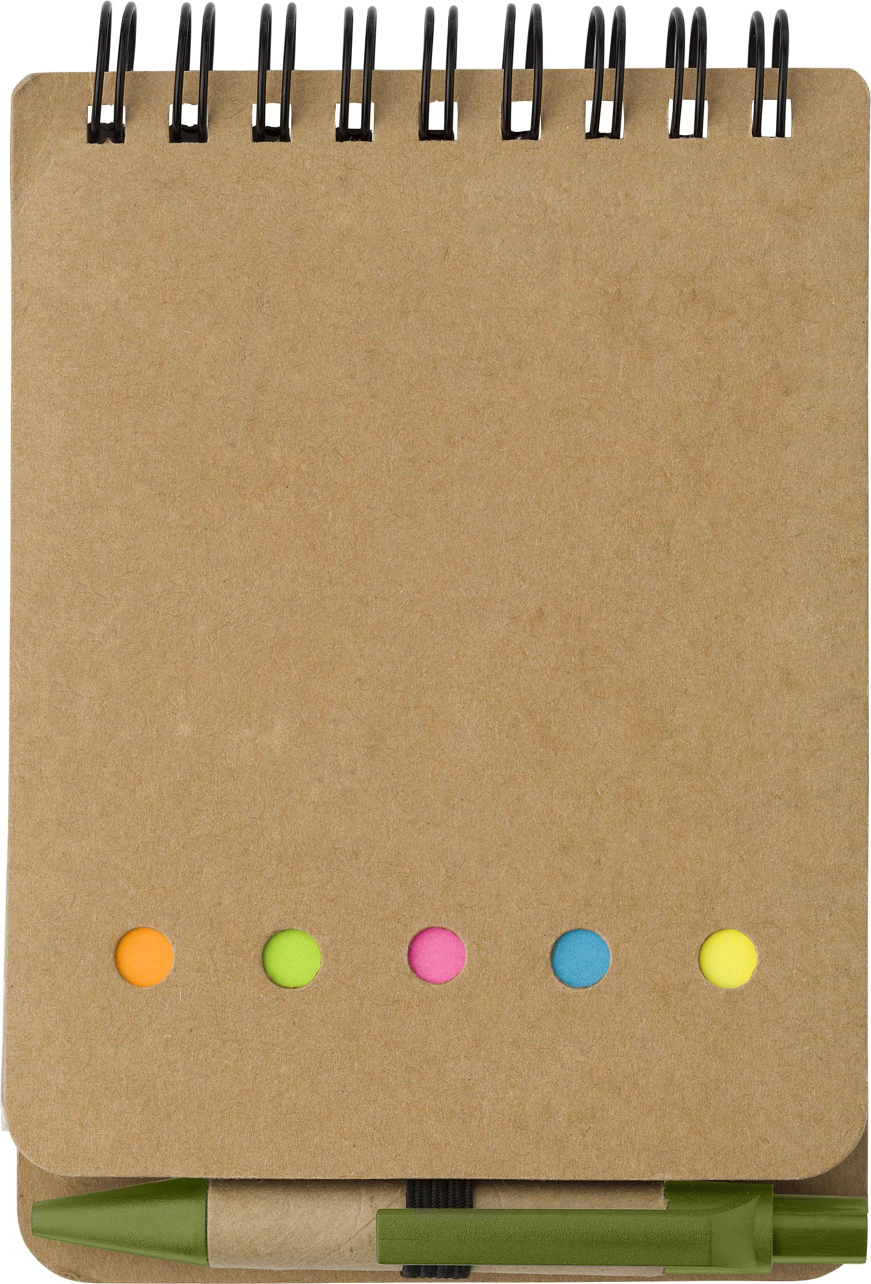 Set memo a spirale, memo stick in vari colori, pagine a righe, penna a sfera con corpo in cartone, refill nero