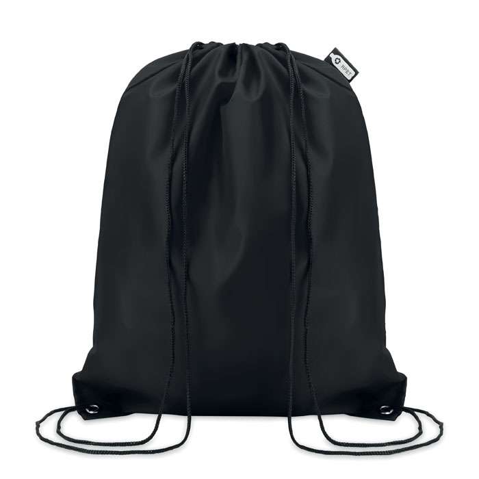Sacca in RPET 190T con cordini in PP. Materiale proveniente da bottiglie riciclate.