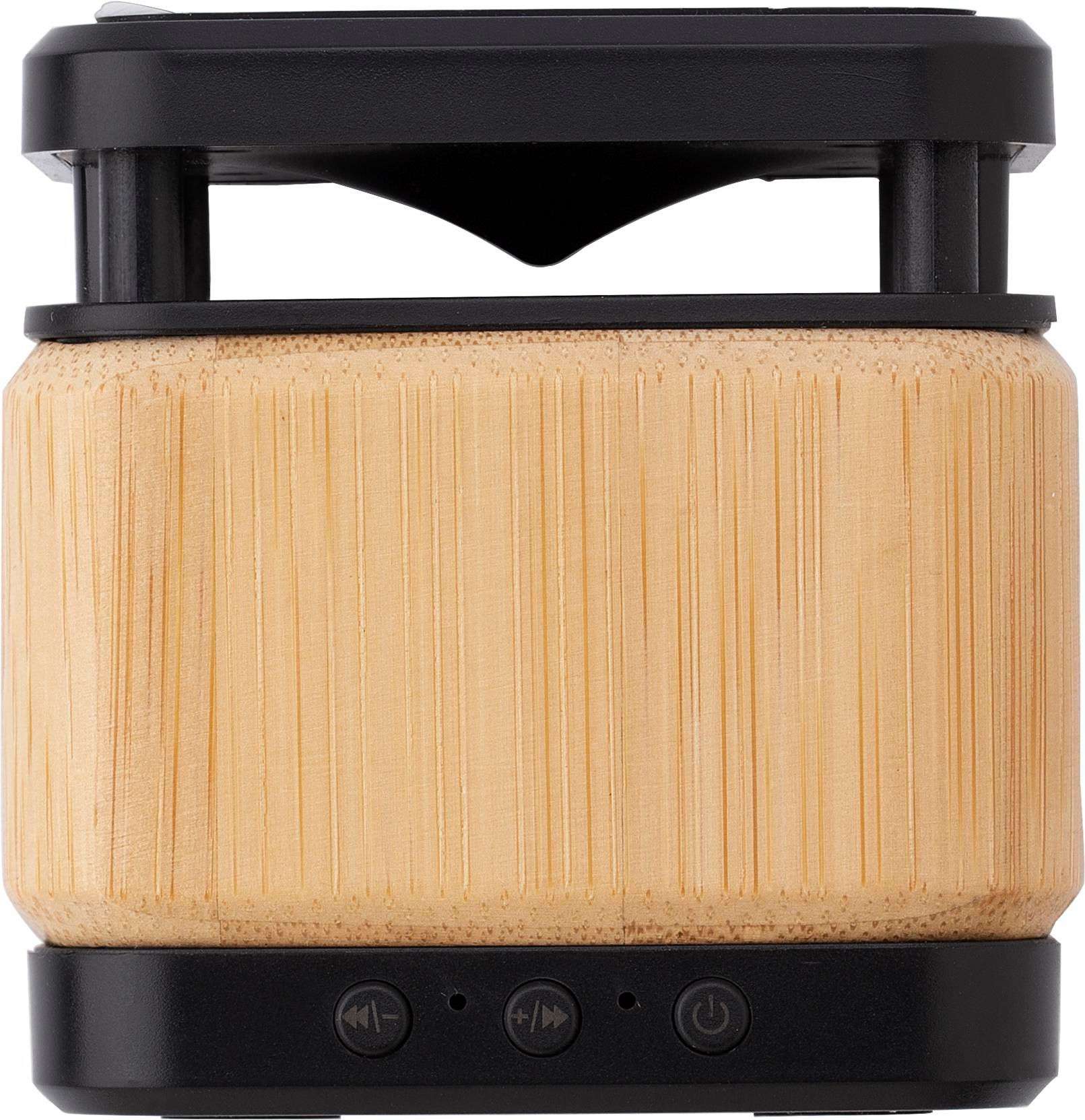 Speaker e caricabatterie wireless in bamboo e ABS, input 5 V 1,5 A, output 5V 0,8 A,3 Watt, batteria d'emergenza da 400 mAh, fondo e parte superiore antiscivolo, incluso micro USB, cavo di ricarica USB