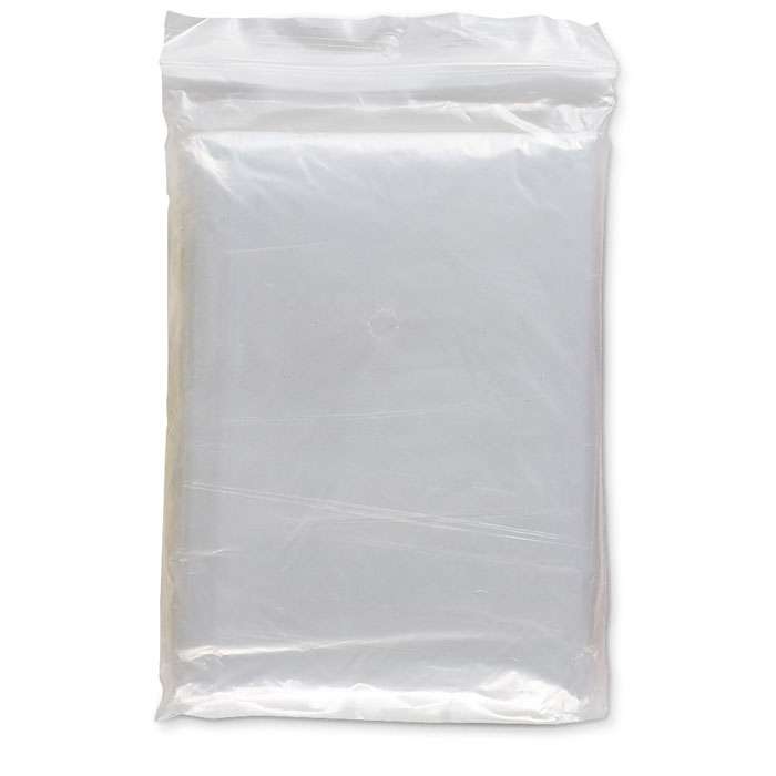 Poncho ripiegabile in plastica con cappuccio. Confezionato in busta trasparente singola.