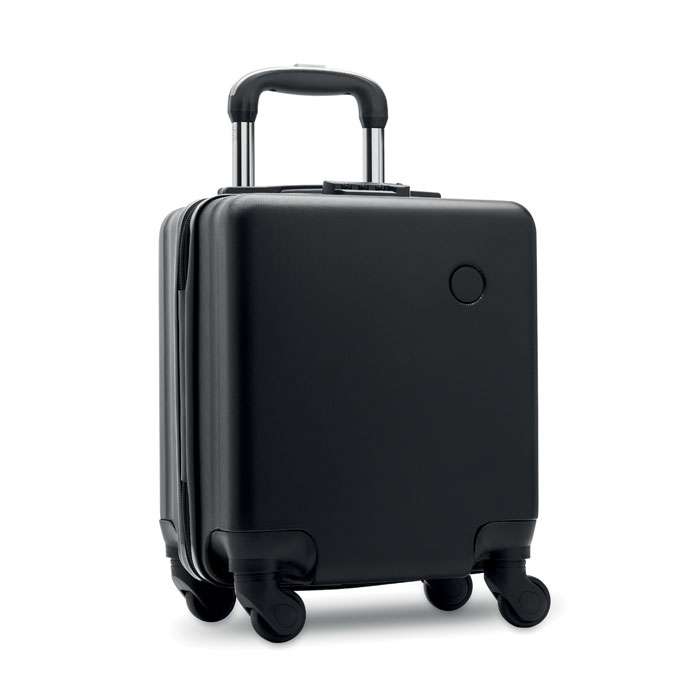Trolley sottosedile da 14 pollici in ABS con 4 ruote. Ha una tasca interna con cerniera. Incluso lucchetto a combinazione e telaio a doppio tubo.