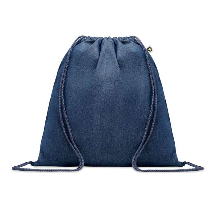 Sacca 50% cotone denim riciclato e 50% cotone borsa con coulisse. 250 gr/m².