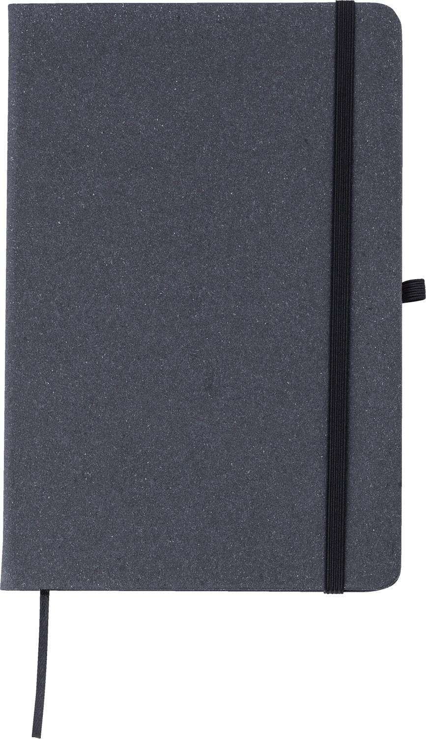 Taccuino in pelle riciclata, formato +/- A5, 200 pagine a righe 70 gr/m², elastico, segnalibro e passante per la penna, logo 'materiale riciclato' stampato a caldo sul retro