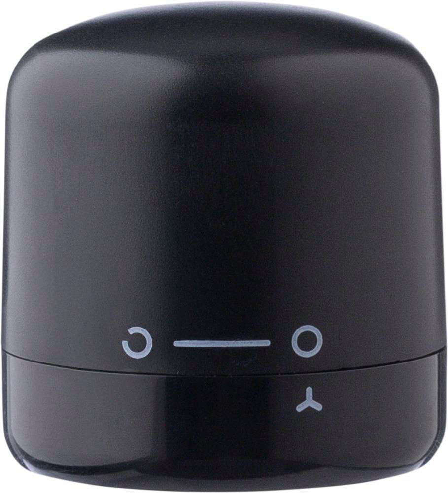 Tappo per bottiglia in ABS con meccanismo di blocco girevole. Confezionato singolarmente in una scatola di cartone avana.