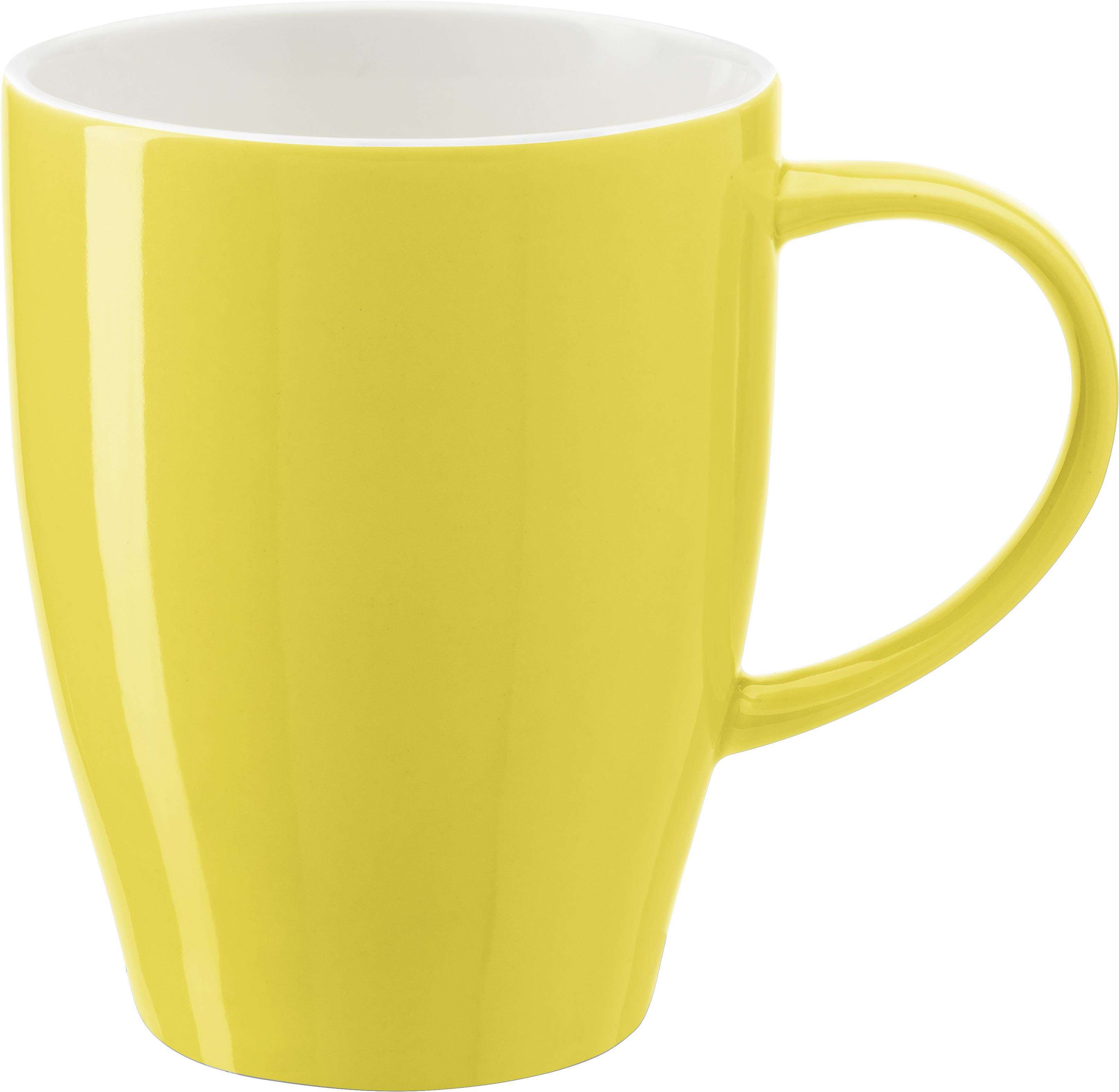 Tazza in porcellana alta qualità, bicolore, interno bianco, esterno colorato, capacità 350 ml, vendita per multipli d'imballo da 48 pezzi, prezzo cadauno. Confezionato in confezione regalo