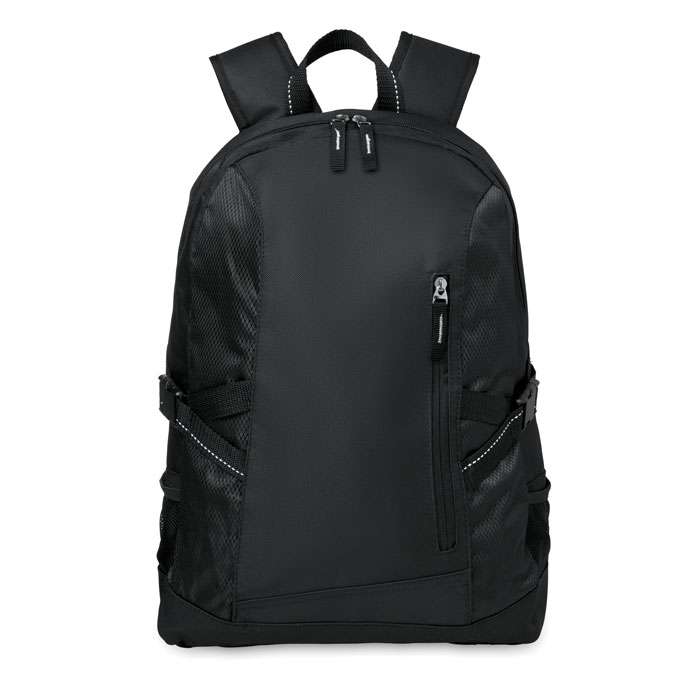Zaino porta PC da 15'' in poliestere 600D. Un comparto porta PC, una tasca frontale con chiusura a zip e 2 comparti laterali. Tracolla regolabile.