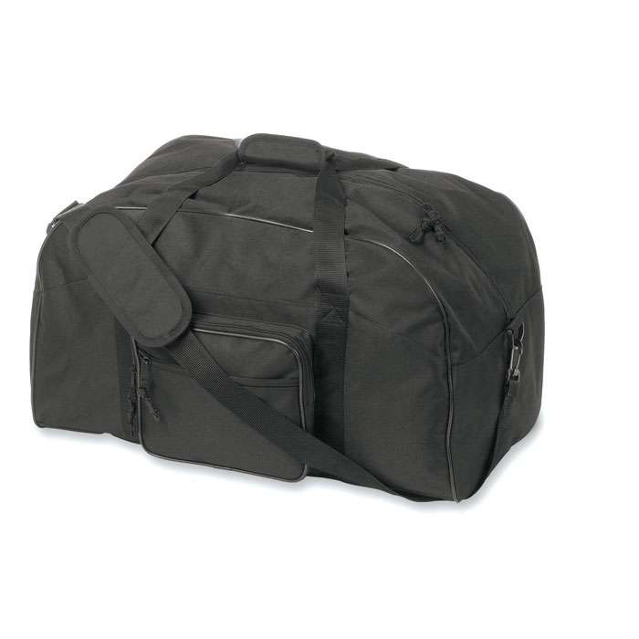 Borsone con tasca frontale e tracolla regolabile e removibile. In poliestere 600D.