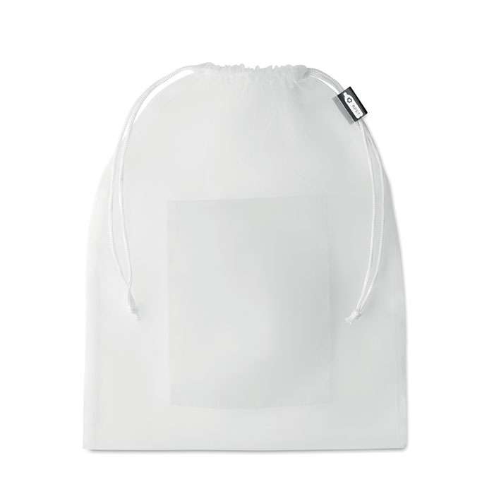 Sacca a rete per la sepsa con tasca frontale in RPET e coulisse in corda.