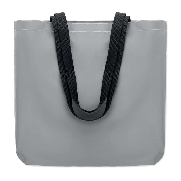 Shopper in poliestere riflettente 190D con manici lunghi.