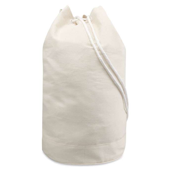 Sacca in cotone naturale da 200g con tracolla bianca.
