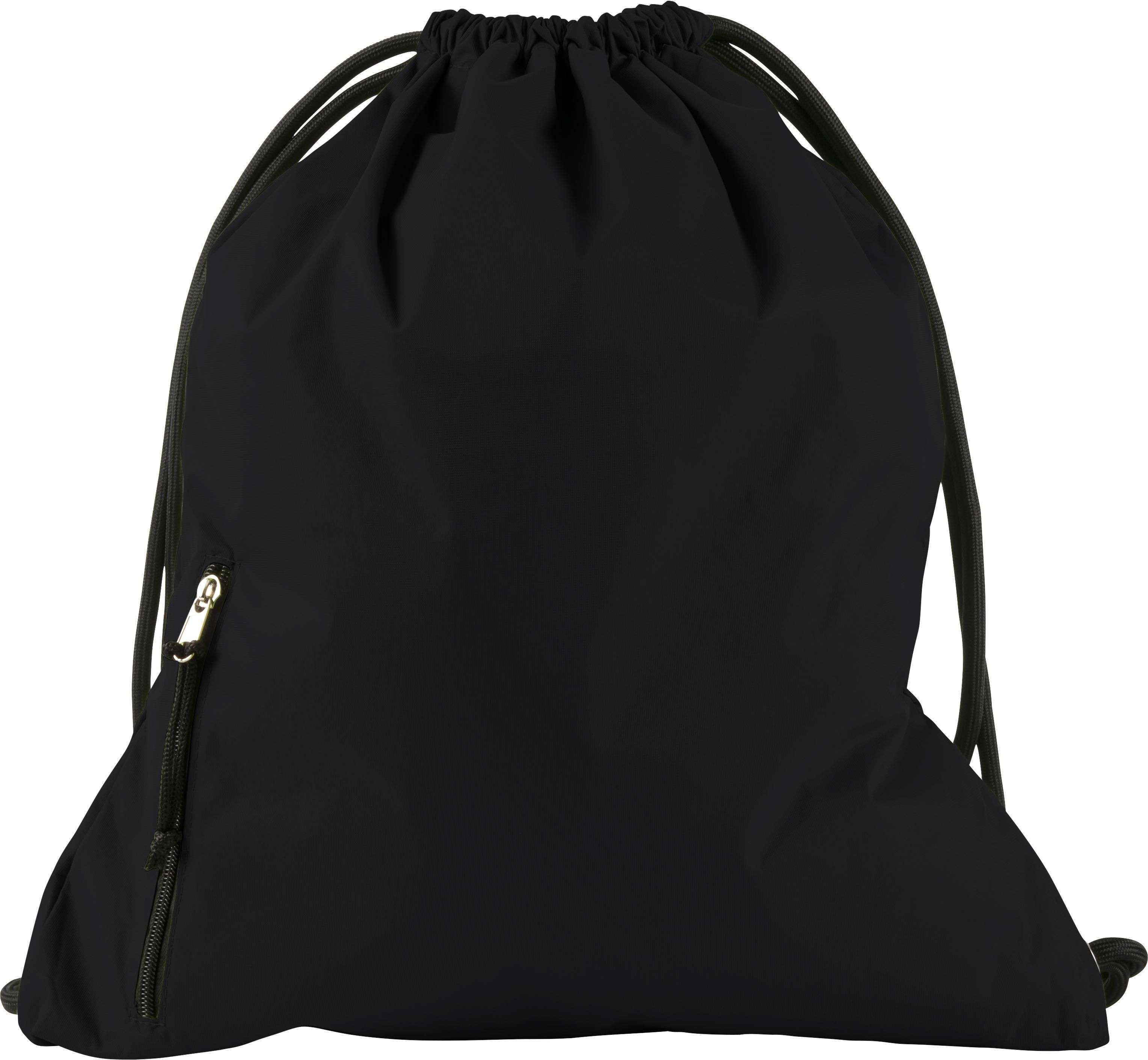 Zaino a sacca, chiusura a coulisse, vano frontale con chiusura lampo, dimensione sacca 49 x 40 cm, in pongee 190 T
