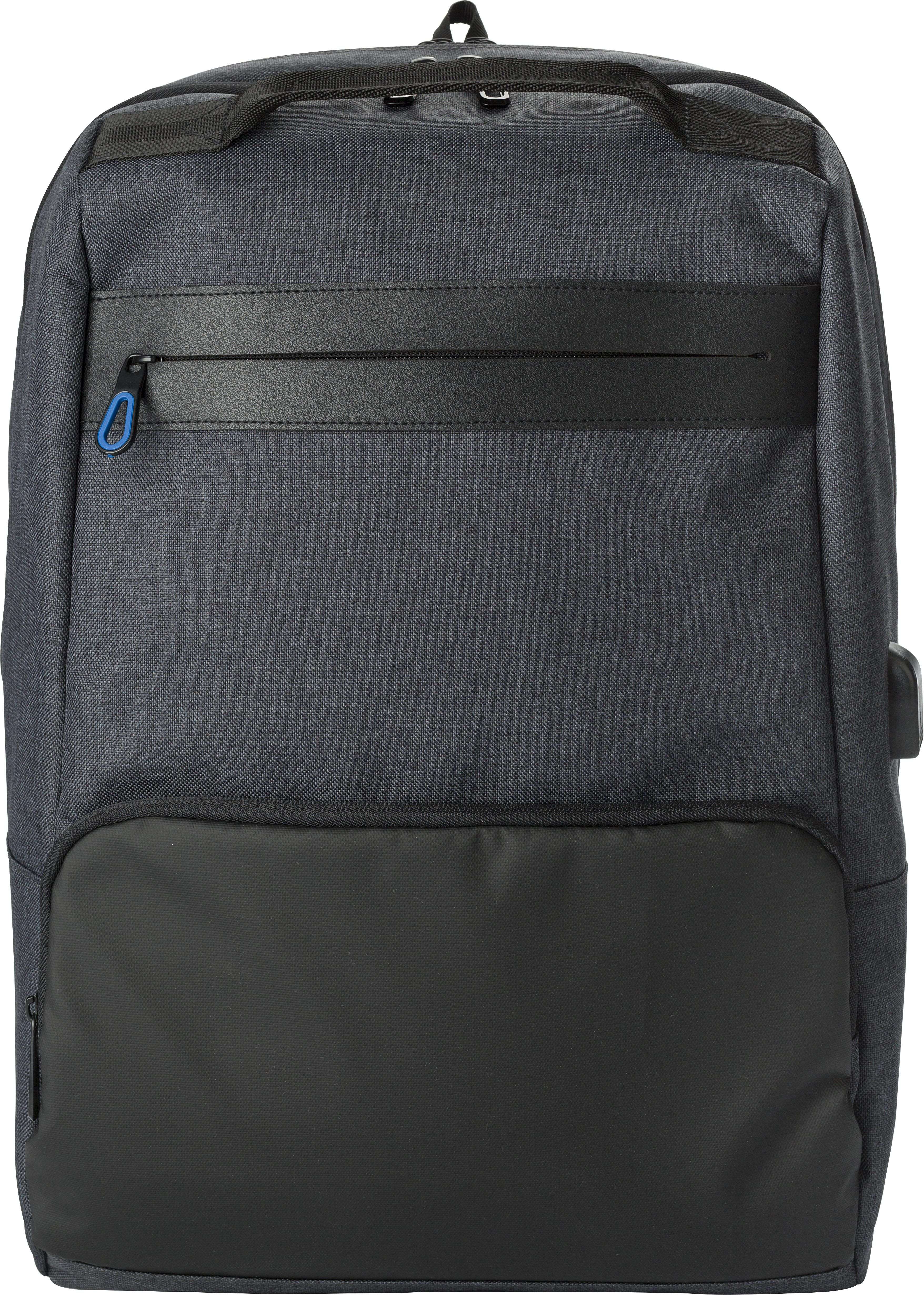 Zaino antitaccheggio portacomputer da 15 pollici, scomparto principale con vano imbottito per un portatile, tasca interna, vani sulla parte anteriore con chiusura lampo, manico, spallacci regolabili dimensione, in PVC
