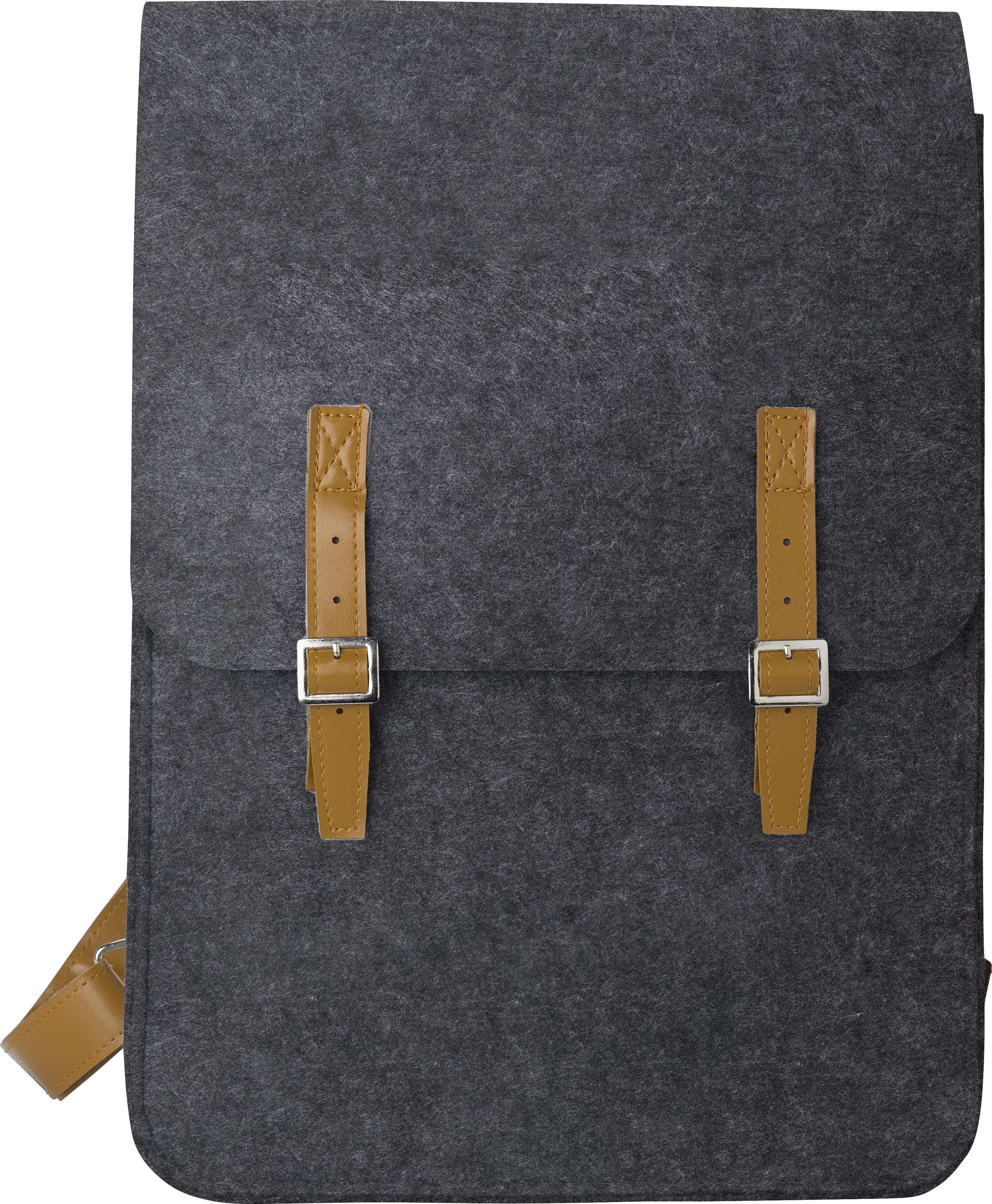 Zaino in feltro rPET, dettagli in PU, ampio scomparto interno, piccola tasca frontale, chiusura con due fibbie