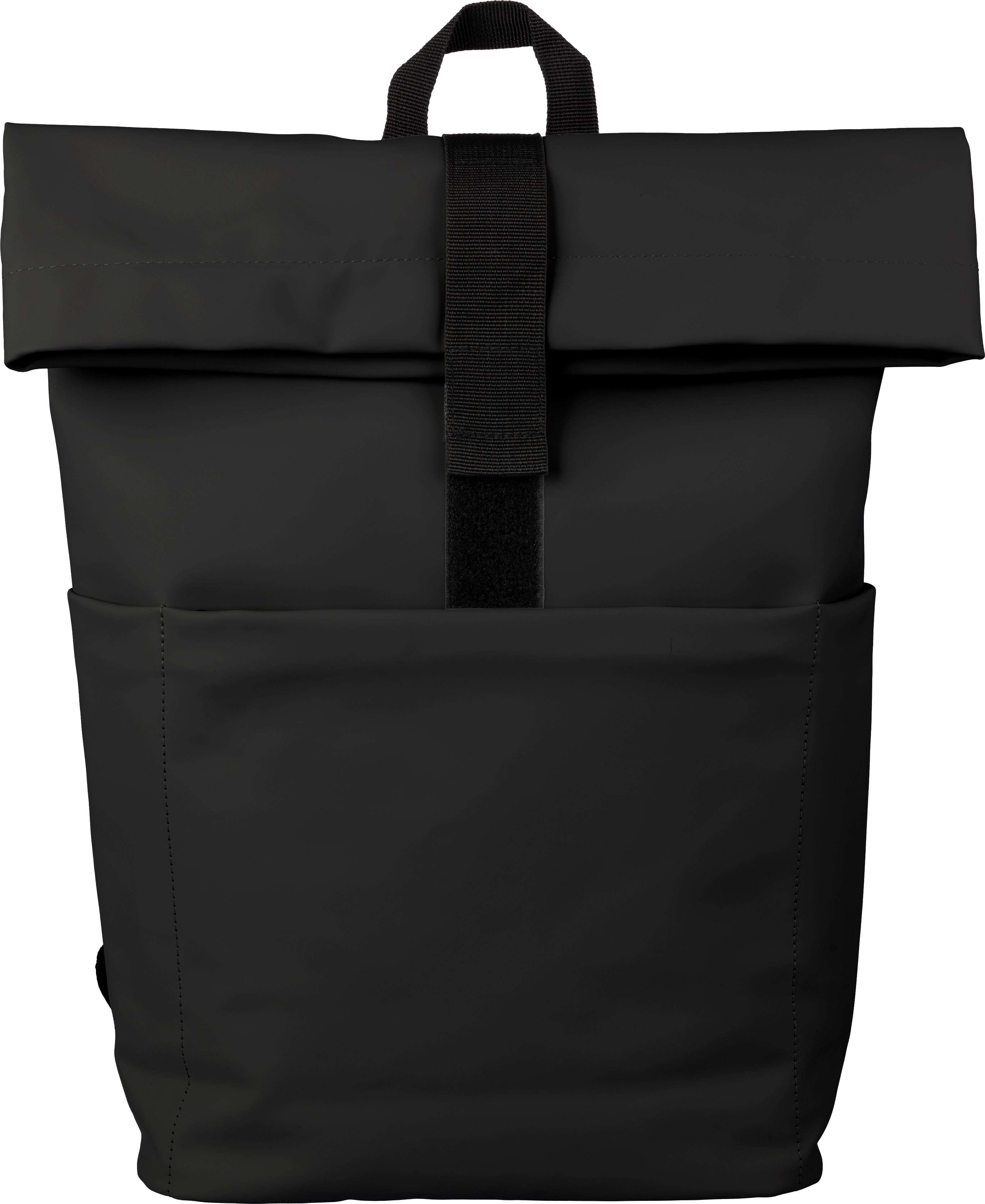 Zaino rolltop in pelle PU, fodera in PU 210 D, supporto in schiuma PE 5 mm, include vano per laptop da 15 pollici, tasca sul lato anteriore con chiusura lampo
